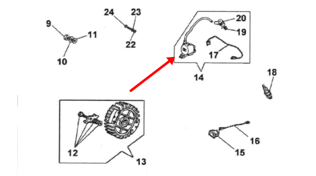 適合馬斯特35內(nèi)然扳手/OleoMac956/Oleomac962 點(diǎn)火模塊。OEM編號:4003.1178